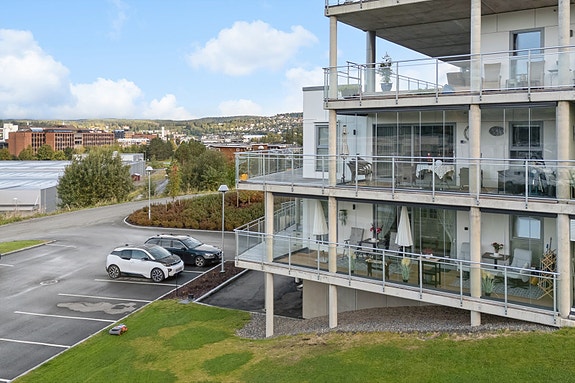 Fantastisk flott beliggenhet, fremst i bygget med veranda med panorama utover byen og sjøen. Parkering i p-kjeller med heis. Det er gangavstand til bysentrum, skoler og Sørsileiret med kjøpesenter.