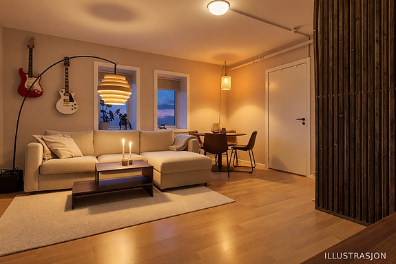 Pris per m² ligger 8 200 kr under snittet for leiligheter i Trondheim Sentrum.