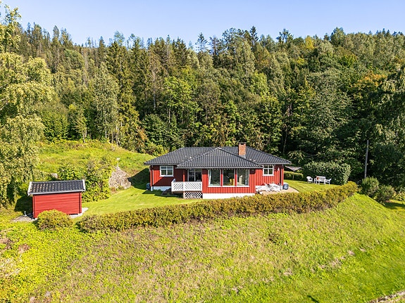 Du bor høyt og fritt i terrenget, nærmest støyfritt og uten innsyn fra naboer. Uteområdet byr på vestvendt terrasse og steinlagt platting, og har sol fra morgen til kveld. Tomten har god boltreplass for hele familien og grenser til skogen i bakkant. Gode parkeringsmuligheter i garasje og på egen tomt. Innvendig består boligen av entré/gang, vaskerom, stue/spisestue, kjøkken, 2 bad og 3 soverom.