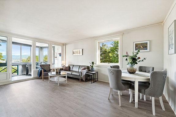 Pen 3-roms hjørneleilighet i høy 1. etasje - fjernvarme inkl. - grensende mot marka - innglasset balkong - utsikt!