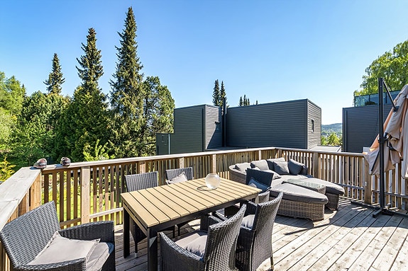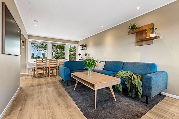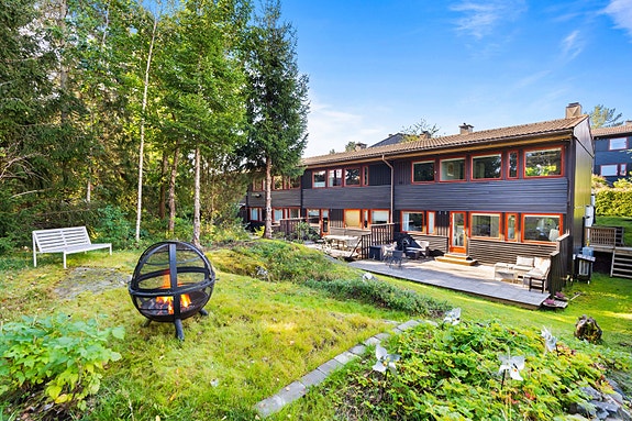 Velkommen til et modernisert enderekkehus over to plan, med fantastisk beliggenhet i et stille og rolig borettslag. Her får du to solrike uteplasser og en hage med naturtomt, perfekt for deg som ønsker en kombinasjon av komfort og nærhet til naturen. Kun 5 minutter fra tog og buss, og kort vei til kjøpesenter og butikker.