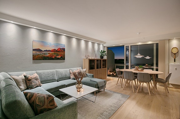 HAMAR SENTRUM - Gjennomført og stilren 3-roms leilighet sentralt i Hamar. Balkong med mjøsutsikt. Kort veg til "alt".