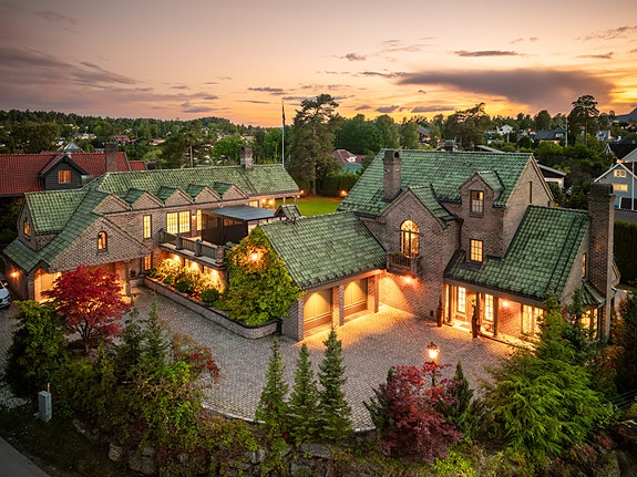 Velkommen til Øverbergveien 14, en herskapelig, betydelig påkostet eiendom i engelsk stil. Foto: Chris Borowiak