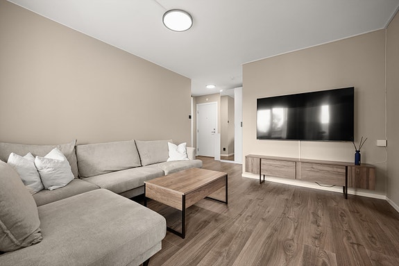 - Åpen stue- og kjøkkenløsning med plass til sofakrok og spiseplass