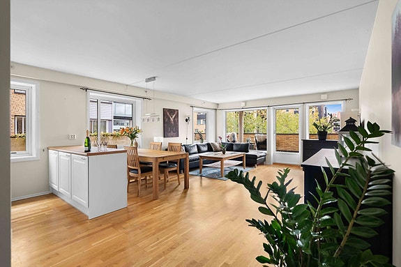 Sentral og attraktiv beliggende 3 -roms med markterrasse, garasje og heis. Nærhet til Metro og gode kollektivtilbud.