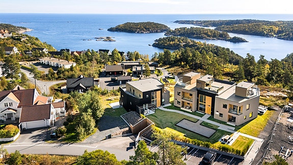 Flytt rett inn i 3-roms moderne selveier med nydelig sjøutsikt, solrik terrasse, 2 bad og garasjeplass