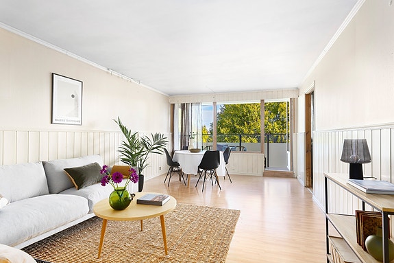 Lys og romslig 3-roms familieleilighet med balkong - Heis - Garasjeplass - Sentralt beliggende - Moderniseringsbehov