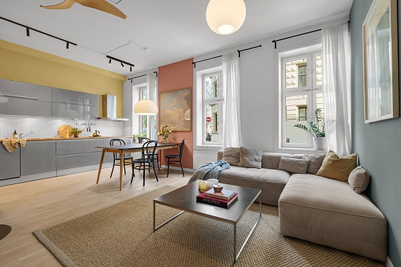 Markveien er lenge blitt betraktet som en av de mest attraktive gatene på Grünerløkka. Her bor du tilbaketrukket og rolig, samtidig supersentralt med alt av kafeér, restauranter og butikker i umiddelbar nærhet.