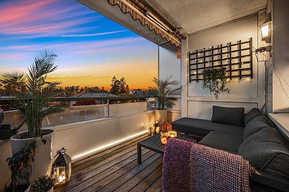 - Solrik, vestvendt balkong på 8 m2 med flott utsikt
