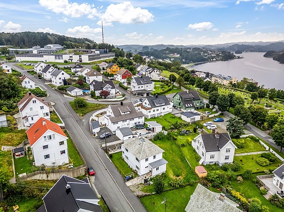 Sentralt beliggende tomannsbolig på stor tomt med utsikt.