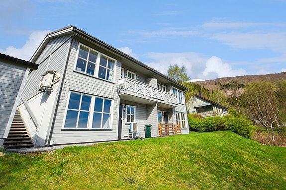 Stor 4-roms leilighet med trappefri adkomst, carport, garasje og fin utsikt! Sentralt i Eidsvåg.