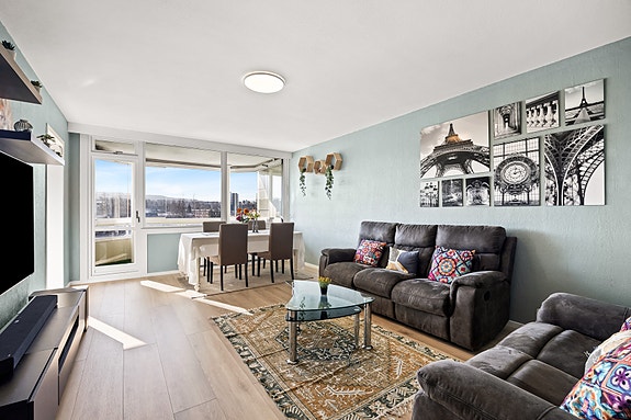 Flott 4-roms leilighet med vestvendt balkong på ca. 8 kvm. Leiligheten har god gjennomgående planløsning med store soverom, romslig separat kjøkken og et romslig bad som ble oppgradert i 2019 i regi av borettslaget. Den gjennomgående planløsningen og de store vinduene sørger for at boligen oppleves som lys og luftig. Leiligheten ligger fint til med god internbeliggenhet med fint utsyn fra vinduene.