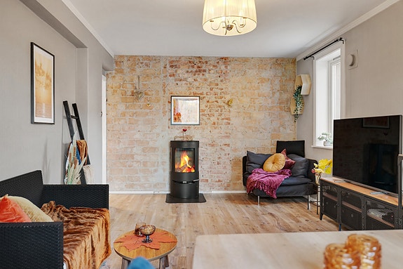 Leiligheten har en flott endebeliggenhet i byggets 2. etasje og en svært god planløsning som gir flere muligheter. Innvendig består leiligheten av entré/gang, to kott, et stort soverom, pent bad med gulvvarme og opplegg for vaskemaskin, lyst og pent kjøkken, samt en romslig og lys stue med vinduer på to sider som sikrer gode lysforhold. Fra stuen er det utgang til en flott balkong på 7 kvm med gode solforhold og hyggelig utsyn!