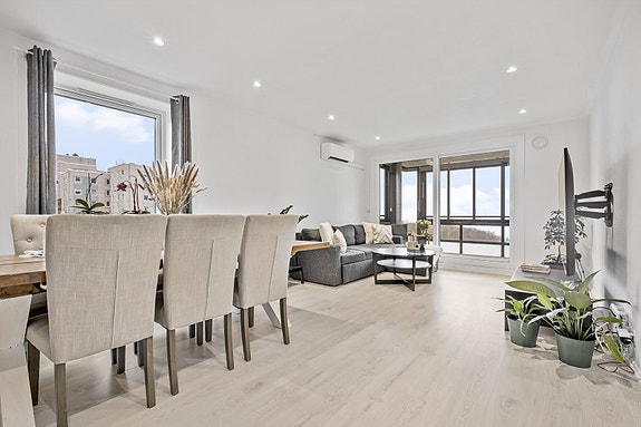Pen 3-roms leilighet med ny innglasset balkong og flott utsikt |Barnevennlig beliggenhet |Buss og butikk like ved