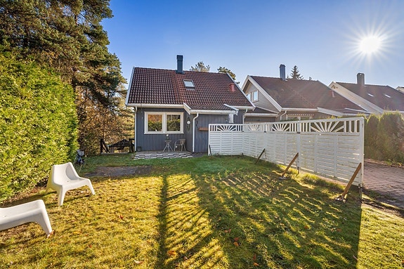 Enebolig over 3 etg. | 2 Innganger | 2 Kjøkken | 5 Sov | Vinterhage | Barnev. | Garasje | Ute parkering | Hage
