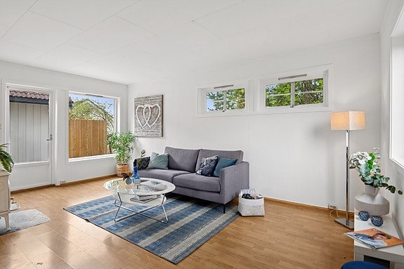 Leiligheten er en lys 2-roms selveierleilighet i enebolig med en praktisk planløsning over et plan. Leiligheten fremstår med endel bruksslitasje, og det må påregnes noe oppgraderinger. Fra stuen er det utgang til skjermet terrasse med god plass til å møblere etter eget ønske. Garasje på felles tomt medfølger.