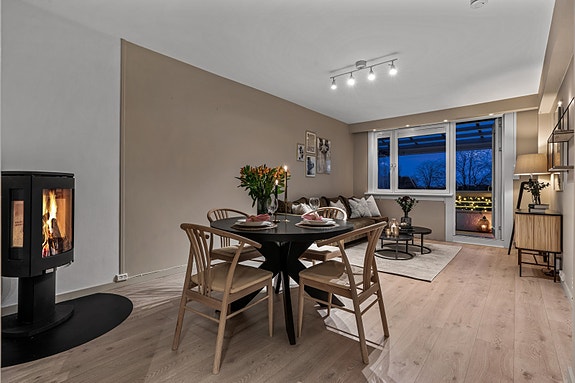 Lys og innbydende 3-roms toppleilighet med innglasset balkong - Peis - 3 boder - Idyllisk og naturskjønt område