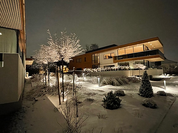 Det er kun to leiligheter i bygget og totalt 6 leiligheter i sameiet. Meget pene uteområder med internstier, belysning og beplantning