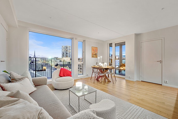 Ny, lekker og luftig 3-roms hjørneleilighet i 8.etasje | Flott utsikt og gode solforhold | Innglasset balkong !