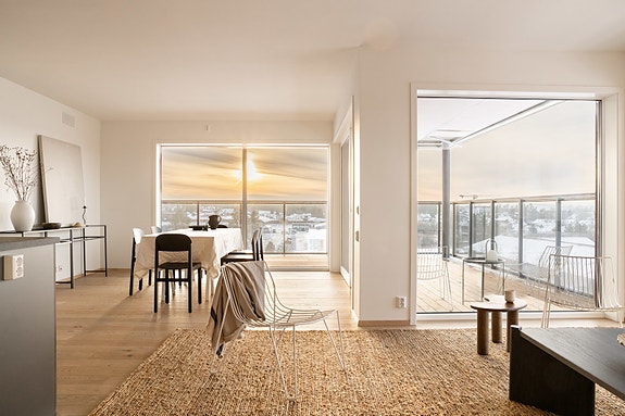 Kanalparken - Strøken 4-roms i 6. etg med heis og stor solrik balkong på hele 31 kvm. 5 års nybygg-garanti og IN-ordning