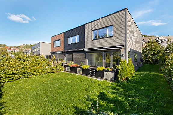 Velkommen til Stokkeveien 8E! Boligen ligger fint til på flat tomt og går over to etasjer. Sydvendt som gir sol på uteplassene fra morgen til kveld.