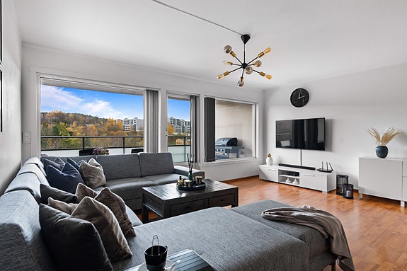 Velkommen til Høybråtenveien 25H - en stor og gjennomgående 4-roms beliggende flott til i populære Bjørnheim borettslag på Høybråten. Denne toppleiligheten tilbyr en praktisk planløsning, god romfordeling og utgang til to herlige balkonger med et samlet areal på 17 kvm! I tillegg disponerer leiligheten en kjellerbod, samt en garasjeplass med elbillader.