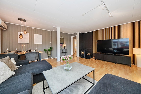 Ekstra isolasjon for god energieffektivitet. Walls2Paint-plater på veggene og alle gulv med slitesterk BerryAlloc Grand Avenue. Teknologiske løsninger som USB-uttak på soverom, datapunkter og rørfremføring for elbil-lader gjør boligen fremtidsrettet.