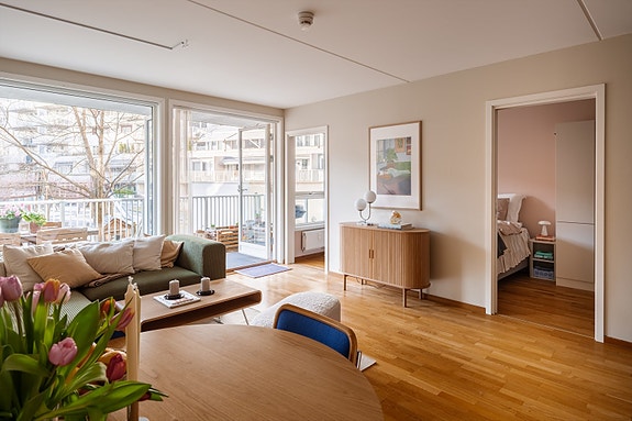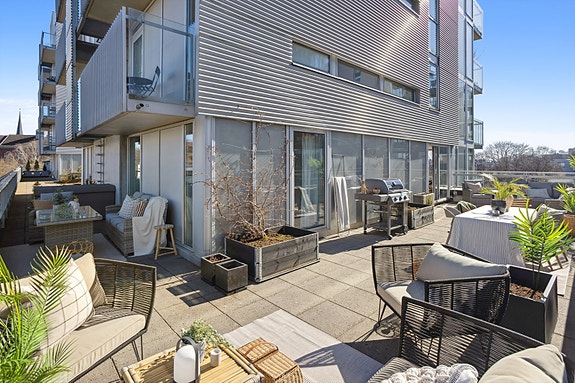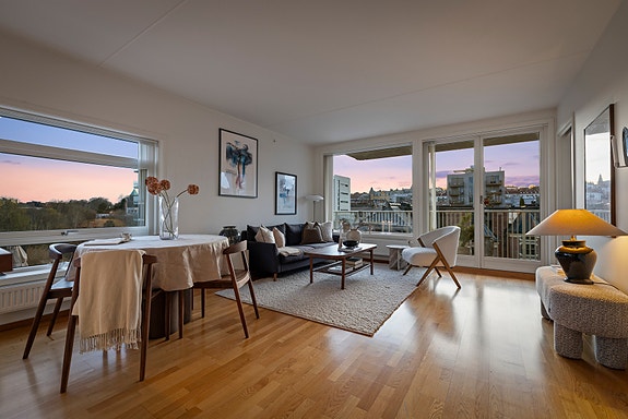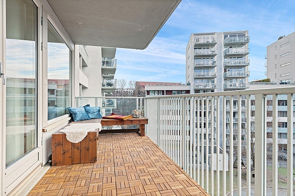 Boligen ligger i 5. etasje og har en sydvendt og solrik balkong på 10 kvm. med gode solforhold.