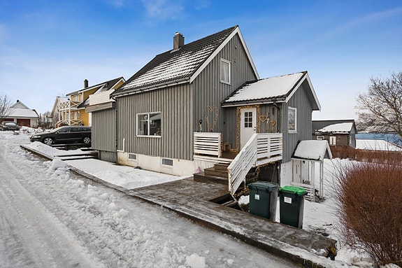 Sjarmerende enebolig over 3 plan med praktisk planløsning og inneholder; Entré, gang, 2 bad, kjøkken, stue, kjellerstue, 4 soverom og 3 boder. Boligen ligger fint til med gode sol forhold og fantastisk utsikt over fjorden.