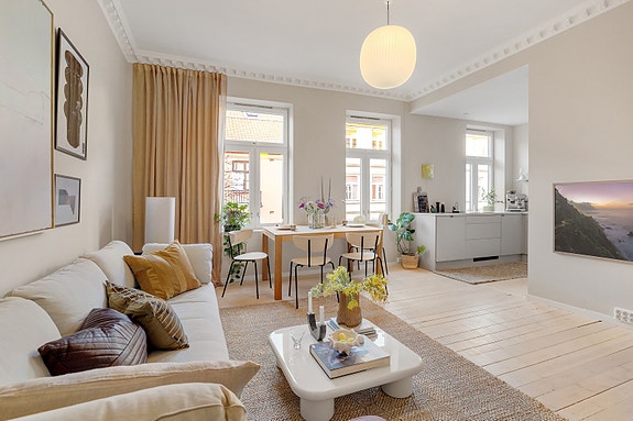 Som vi har gledet oss til å vise dere denne 2025-nyheten! Schübelers gate 11 er en aldeles nydelig klassisk leilighet, som balanserer det moderne og det klassiske på perfekt vis.