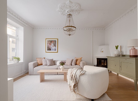 Klassiske detaljer som store klassiske vinduer, lyse tregulv, stukkatur og rosett gir boligen en sjarm det er umulig å ikke forelske seg i. Leilighetens 3 soverom ligger alle vendt ut mot to rolige bakgårder, godt skjermet for støy. Denne må oppleves!