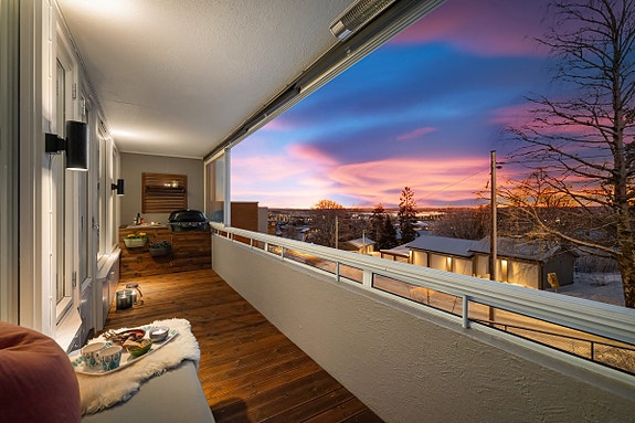 - Vestvendt, solrik, innglasset balkong på 11 kvm.