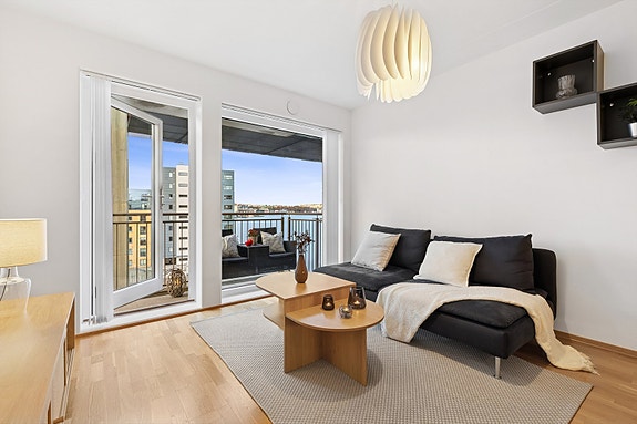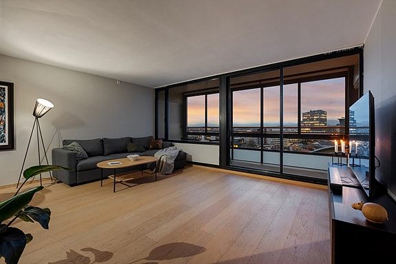 Leiligheten ligger i 2.etg. (1.etg. fra atrium) og har en god planløsning. Kombinert med store vindusflater gir en god romfølelse.