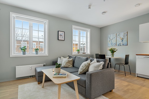 Med en gjennomtenkt planløsning er dette en ideell førstegangsbolig. Leiligheten byr på flere ettertraktede kvaliteter som balansert ventilasjon, fjernvarme, parkering og en romslig kjellerbod på 9 kvm.