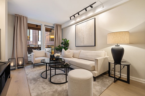 Interiøret preges av rene linjer, god takhøyde, lyse flater og luftige rom. De store vindusflatene bidrar til rikelig med naturlig lysinnslipp i leiligheten.