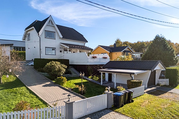 Spennende eiendom som skiller positivt ut med garasje, carport og stor solrik veranda