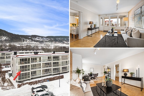 Romslig og praktisk 3 - roms endeleilighet med stor, innglasset balkong - mulighet for parkering med el lader -Haskolljordet nær Lierbyen