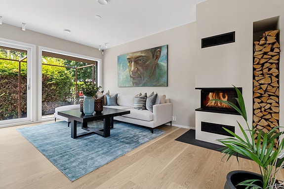 Boligen er en del av et sameiet med fire boliger tegnet av arkitekt R21. Boligen har utgang til terrasse, privat hage og takterrasse, og ligger rundt en trivelig, felles delvis steinsatt gårdsplass. Slik får du uterom tilpasset både ulike tider på døgnet og ulike årstider. Kledningen er beiset i en mørk jordfarge, grunnmur av tegl og pergola langs fasade og terrassen. Gjennom sin plassering, utforming og materialvalg har Konsul Schjelderups vei 1 en helhetlig og lekker utforming. Prosjektet ble ferdigstilt januar 2025. Velkommen til visning!