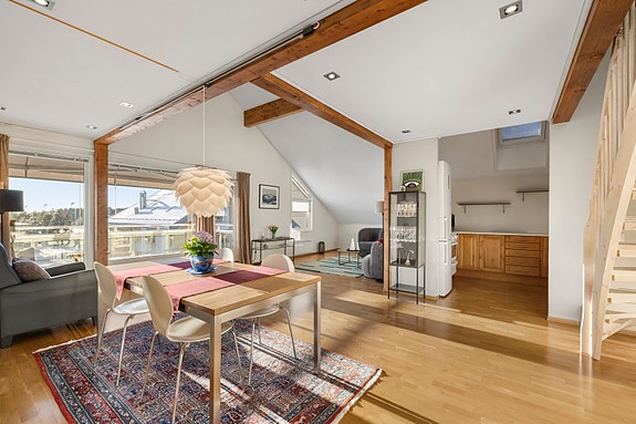 Ødegården/Sofiemyr - Lys og pen 4-roms toppleilighet over 2 plan, høy himling og stor solrik balkong med flott utsyn