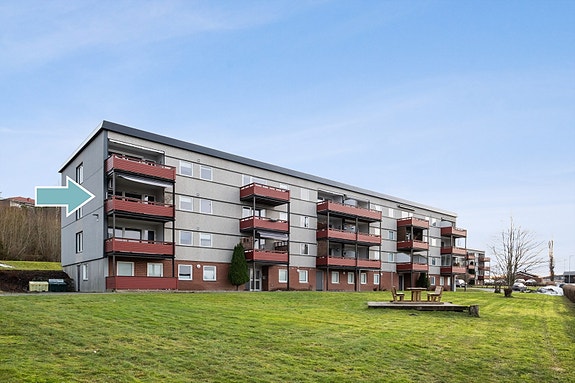 Leiligheten ligger i 2. etasje med flott utsikt og sen kveldssol.