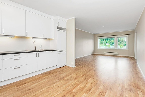 Lys og velholdt 3-roms leilighet beliggende sentralt i Levanger sentrum. Enkel adkomst i 1.etasje! Foto: EFKT (Hamish Grey)