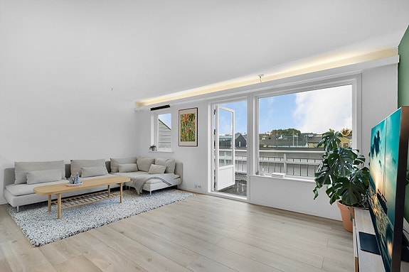 Flott og innholdsrik leilighet over to plan med sentrumsnær beliggenhet. 3 soverom og 2 bad. Heis. Gode solforhold.