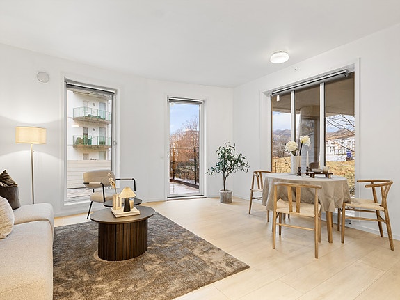 Tiltalende og stor leilighet med stor veranda og gode solforhold.