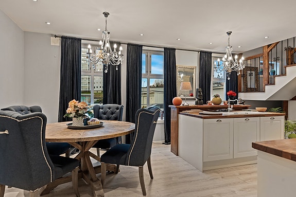 Boligen er gjennomgående påkostet i senere tid, og holder en gjennomgående tiltalende standard. Innvendig er det nyoppussede overflater 2025, ihht takstmanns anbefalinger. Det er bla. nye lekre laminatgulv. Lysmalte vegger og hvite, slette himlinger med downlights med LED. Påkostet kjøkkeninnredning fra Drømmekjøkken med integrerte kvalitetshvitevarer fra Miele. 2 helflisede, store bad med både dusj/wc. Utvendig er hele boligen malt og bakgården er oppgradert med ny inngangstrapp med egen liten uteplass.