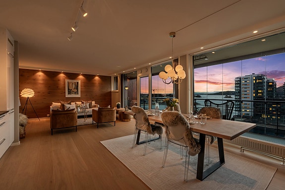 Lekker leilighet i 8. etasje | Fantastisk utsikt | Balkong på 30 kvm | Innendørs parkering | Heis
