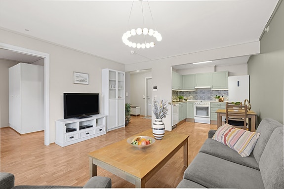 Leiligheten har en fin planløsning med god "flyt" mellom alle rommene.
