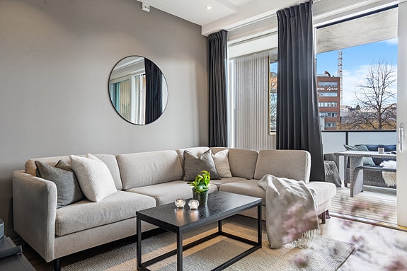 Pen 2-roms fra 2023 med garasjeplass | Vestvendt balkong | Vannbåren gulvvarme | Rolig, men sentral beliggenhet | Heis