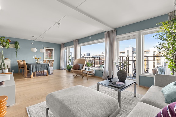 Stilren og tiltalende 3(4)-roms* toppleilighet med to balkonger - Høy standard - Ettertraktet beliggenhet - Garasjeplass
