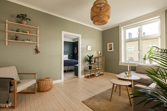 Nydelig og gjennomgående 2(3)-roms leilighet i en klassisk bygård med vakre vinduer, originalt tregulv, peisovn og god takhøyde. Leiligheten har en gjennomgående god planløsning, bestående av et separat kjøkken, en lys og romslig stue, et soverom og et bad.