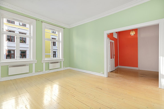 Et lyst og romslig hjem med stort potensial. Meget god intern beliggenhet i klassisk bygård, vendt mot rolig sidegate og skjermet bakgård.